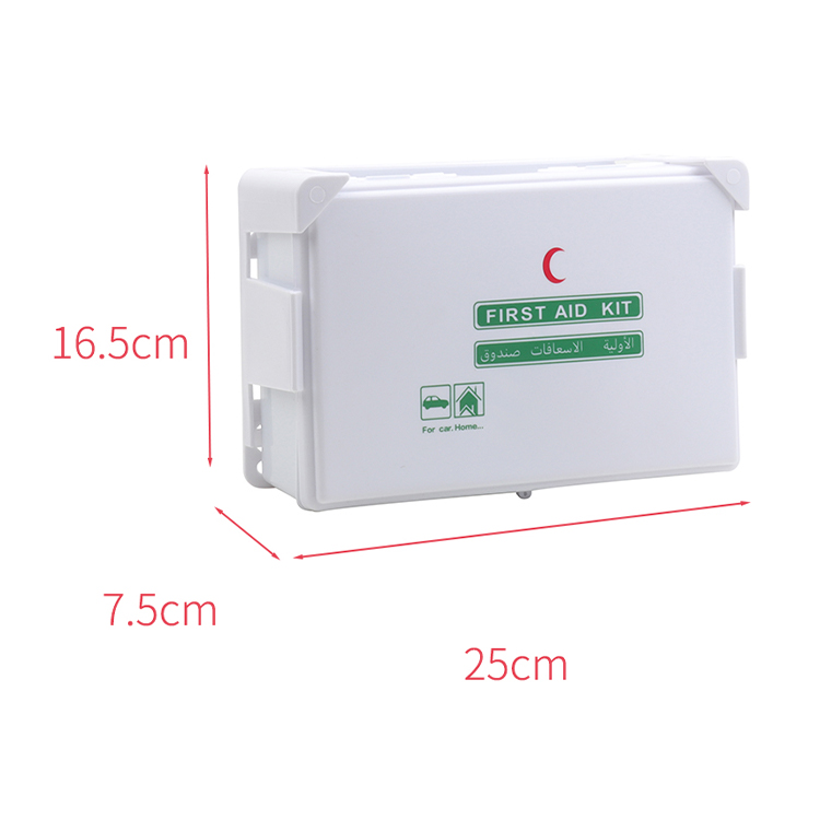 With a practical size of 25 × 16.5 × 7.5 cm, this first aid kit box provides sufficient internal space for commonly used first-aid items while remaining compact enough for convenient storage in cabinets, vehicles, backpacks, or workplaces. Its simple manual design allows quick access to supplies when needed, making it suitable for everyday medical preparedness and emergency response.